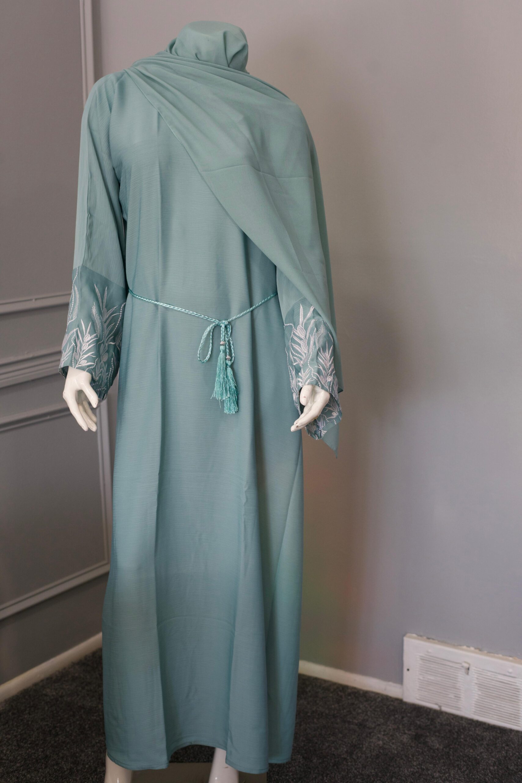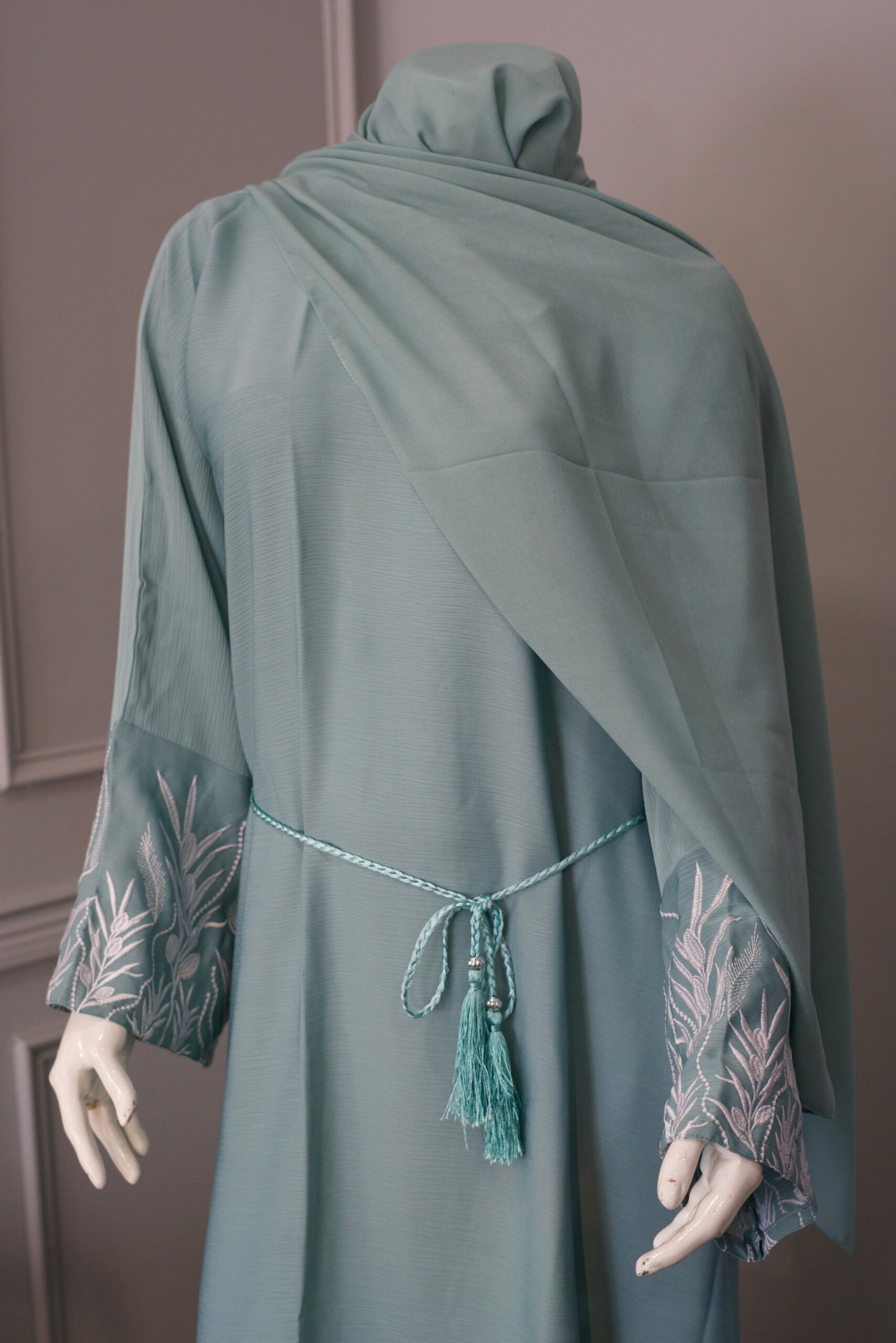 Be the first to review “Elegance Embroidered Sleeve Abaya – Soft Mint Green” Cancel reply